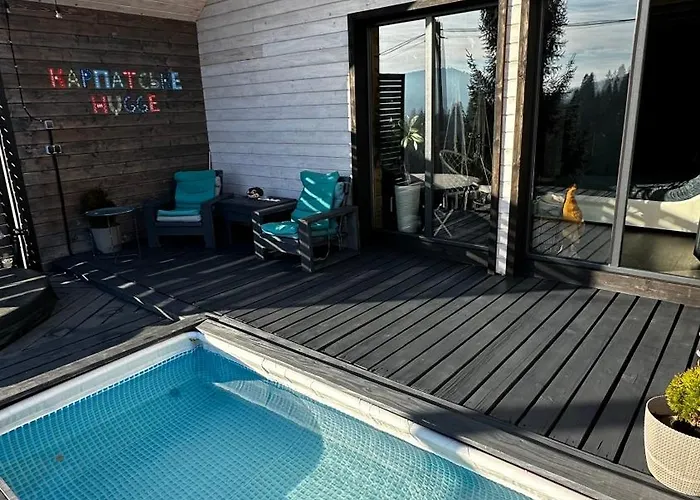 Offering a Jacuzzi, Карпатське Hygge Villa is located merely 5 minutes' walk from Ski Complex Pogar. Situated about 160 km away from the Uzhhorod International airport, this 1-bedroom chalet offers rental bicycles for added fun.